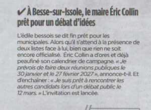 Dans le cadre de la campagne municipale, l’équipe Ensemble pour Besse, menée par Éric Collin, organise son premier débat public.